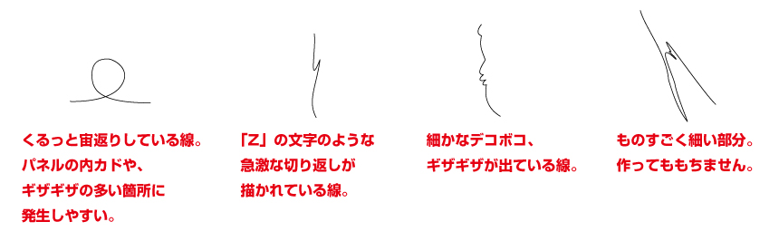 また、ナイフを正しく動かせる線であっても、その通りにパネルを切ると仕上がりが悪くなってしまうような場合もあります。これらの点を直していくのが、ここでおこなうカットラインの修正作業というわけです。