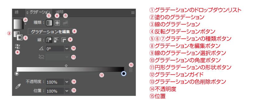 塗と線、いずれかをクリックして、アクティブになっている方のグラデーションを調整できます。