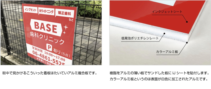 みなさまが屋外で見かける大型の看板は、ほとんどがアルミ複合板が使われています。